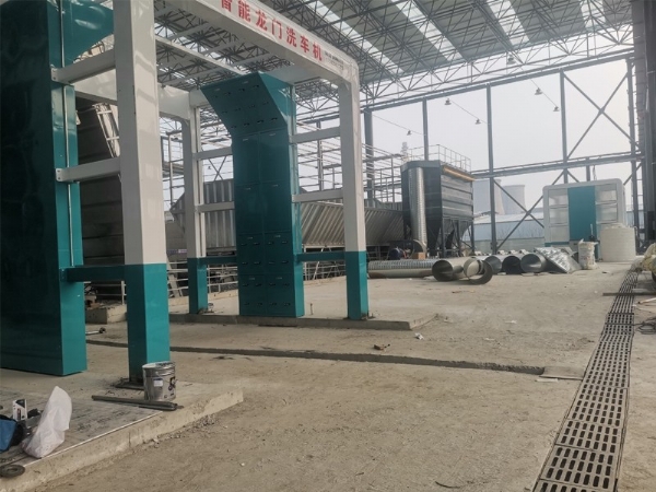 鋼聯(lián)攪拌站專用龍門式洗車機安裝中